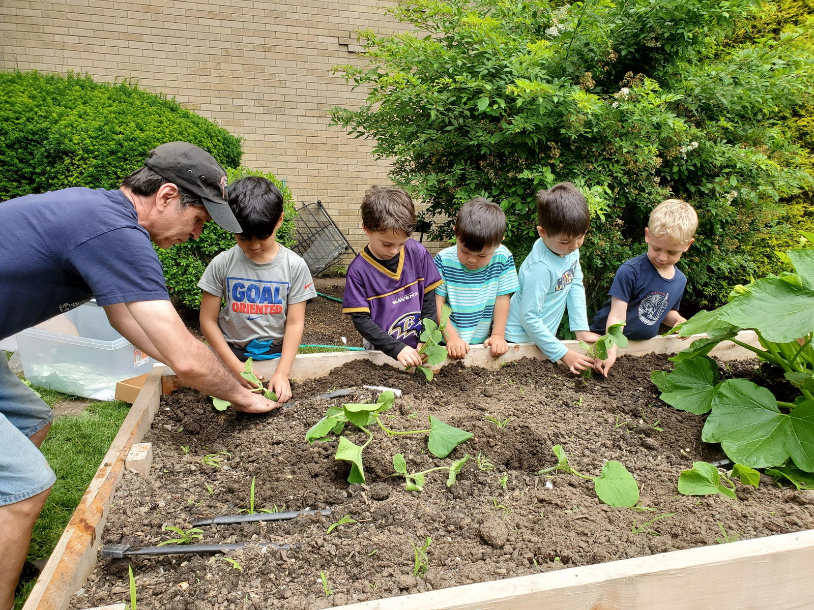 The Temple Sinai garden, situated on the south side of the building, began 12 years ago. Gan Sinai, inspired by Rabbi Aaron Fine, was initiated with the hope that synagogue members would enjoy cultivating a garden, producing vegetables for Shabbat and holiday kiddushim, and donating a portion of the harvest to neighboring food banks. Working in the garden would be a learning experience for our children and adult members.